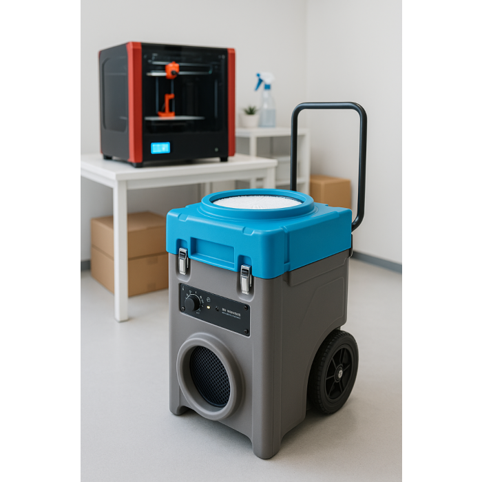 Faither Pro 900 är en professionell luftrenare som enkelt förflyttas mellan arbetsstationer och produktionsplatser tack vare sin vagnsdesign med ergonomiskt handtag och stora hjul.